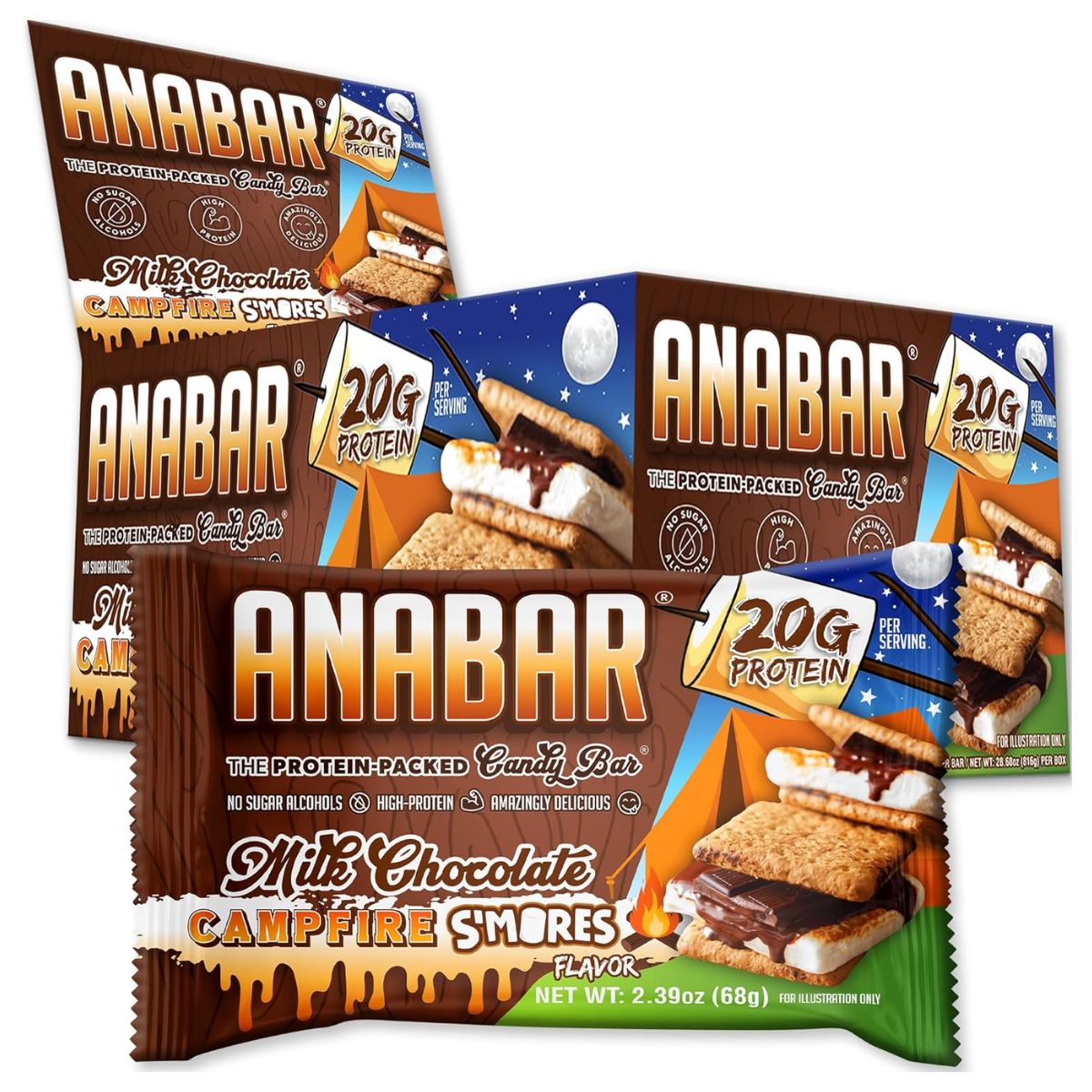 Anabar Protein Packed Candy Bar – 12 Bars, Milk Chocolate Campfire S’mores